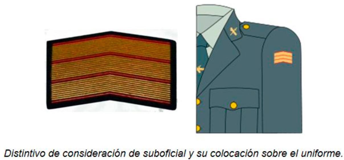 Esto viene a significar que tras solicitar y serle concedida la citada consideración tendrá a ciertas atribuciones que por Ley concede las Fuerzas Armadas a los militares de carrera de los distintos empleos de Suboficial, en los tres ejércitos: Ejercito de Tierra, Ejercito del Aire y del Espacio y la Armada.
