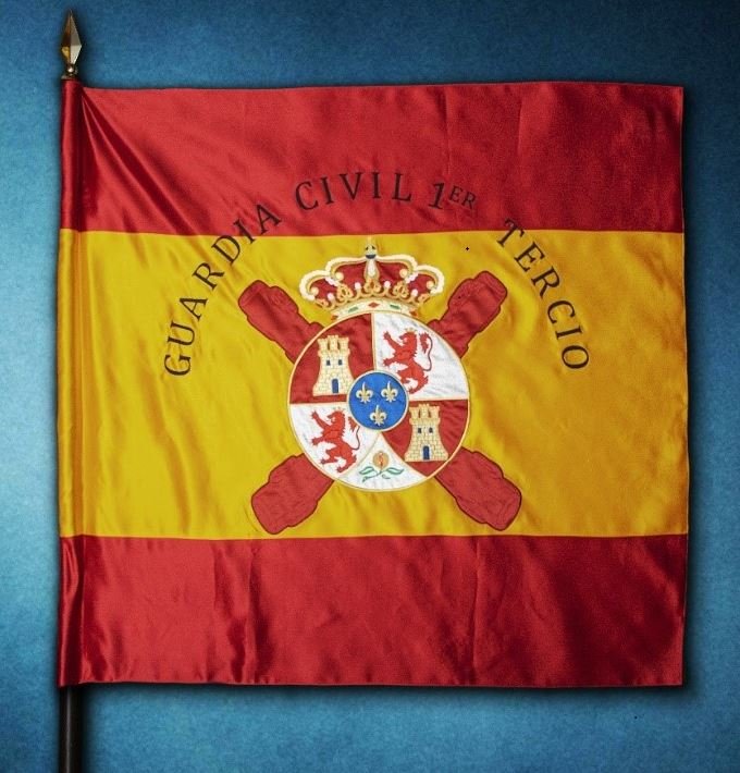 El 8 de marzo de 1854, la Reina Isabel II concedió la primera Bandera Nacional al desaparecido 1er Tercio de la Guardia Civil.