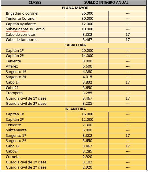 Ahumada se preocupó de todo: en la Cartilla quedó recogida la “Plantilla de los sueldos que S.M. se ha dignado señalar a los Jefes, Oficiales y tropa de la Guardia Civil”, estableciendo así la primera escala salarial del Cuerpo.